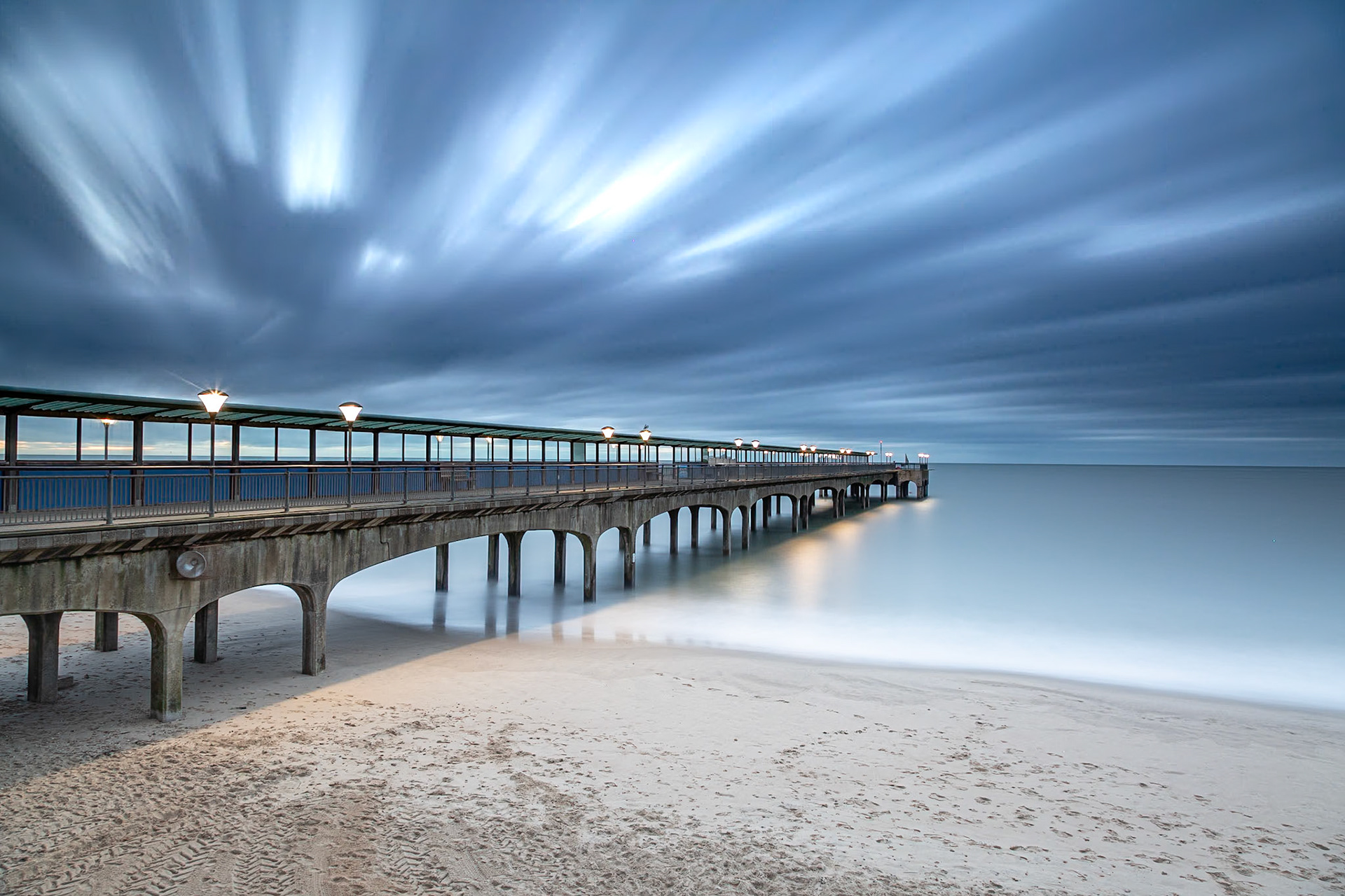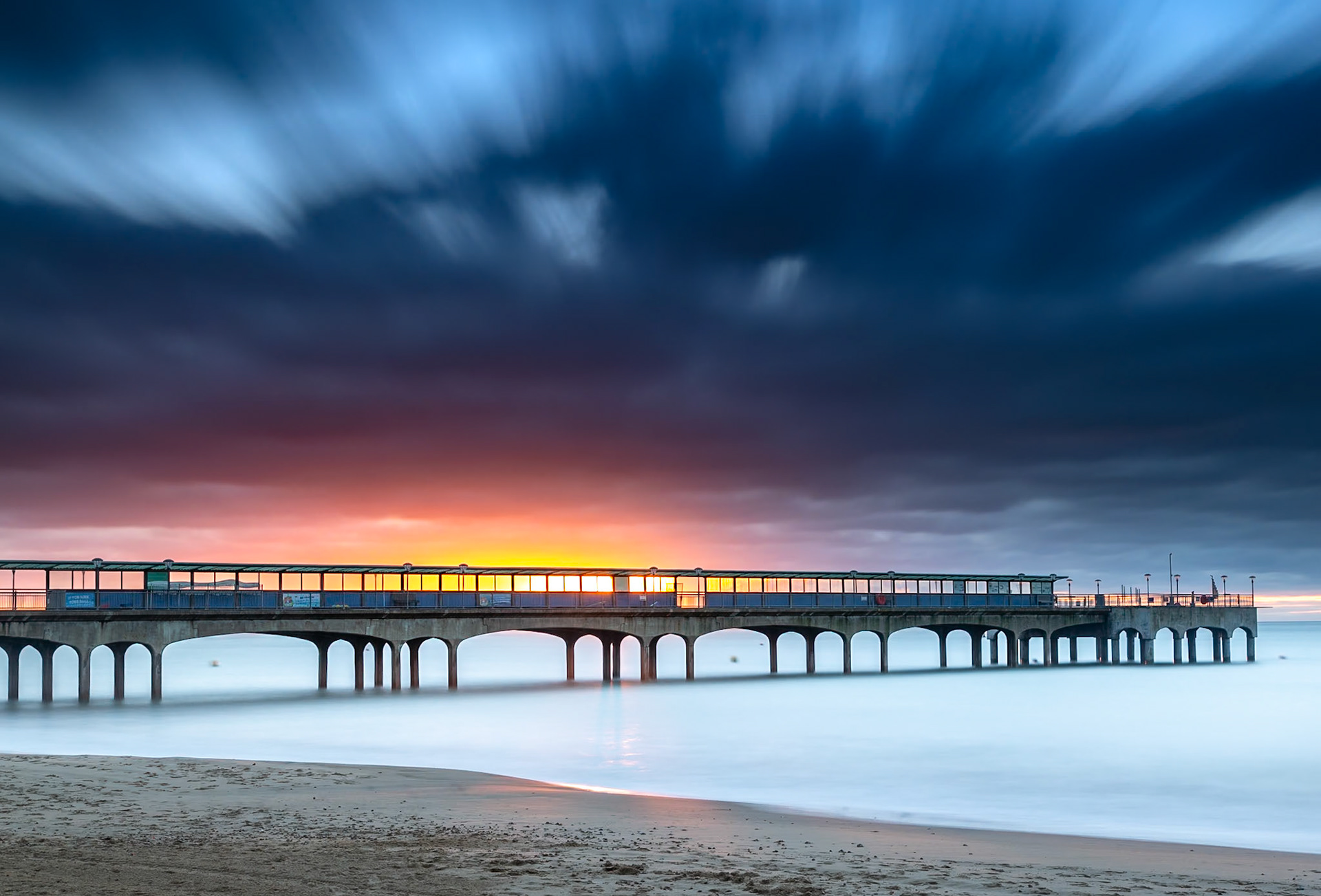 Having failed to get the shot I was after at this location last week, I headed back last night to try again. It didn't look all that promising at first, as a bank of cloud was hogging the horizon, and about 40 mins before sunset the sun all but disappeared - but perseverance won out.. I watched as the clouds over me slowly built with colour just before sunset, the orange/pink glow growing like the clouds were absorbing the colour - a truly remarkable sight to watch!I wanted to capture a bit of movement in the water - so made this image from 9 individual shots taken vertically - each one at 15 seconds, and then stitched together to form a wide panorama capturing all of the bridge (and it's arches!).